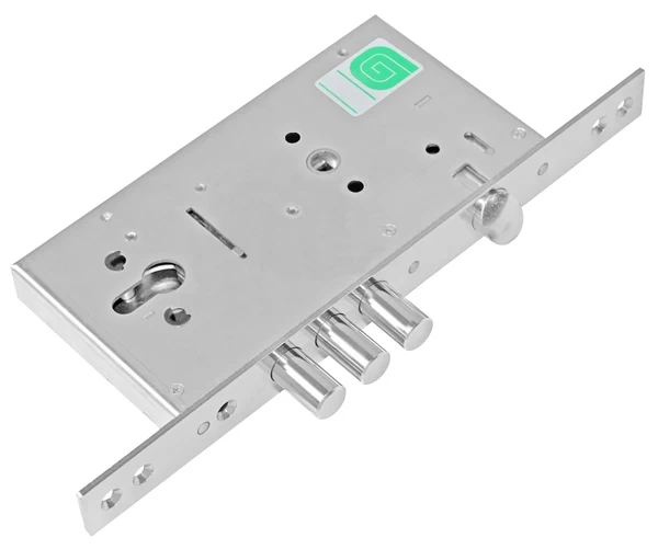 Корпус врезного замка ЗВ 6211 Inter предназначен для установки в металлические двери, шкафы и сейфы. Универсальный, подходит для дверей правого и левого открывания толщиной 40-75 мм. 4 класс безопасности. Усиленная конструкция засова защищает от взлома. Корпус замка устанавливается с раздельной фурнитурой. Рекомендована установка с броненакладкой на цилиндровый механизм. Отверстия для крепления врезной броненакладки усилены втулками для защиты корпуса замка от деформации. Функция отключения защелки от ручки в закрытом положении замка. В закрытом положении защелка остается в фиксированном положении даже при нажатии на ручку. На корпусе замка имеются отверстия для крепления дверных ручек стяжными винтами. Количество оборотов - 2. Вылет ригелей - 26 мм. Диаметр ригелей - 15,8 мм. Бэксет - 57 мм. Межосевое расстояние - 85 мм.